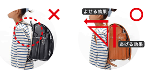 荷物が重いと体の重心が後ろに行きがちですが、肩ベルトが立ち上がっていることによって重心を体の中心に近づけることで姿勢がよくなり、猫背や小学生なのに「腰痛が…」なんてこともなくなります。
