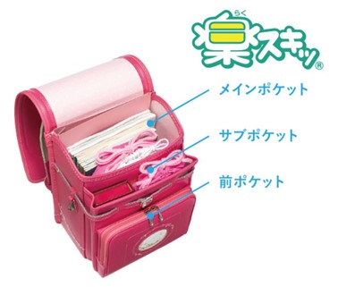 A4フラットファイルがすっぽり入るサイズの「楽スキッ」は、今までのフィットちゃんのモデルよりも20%収納力がアップしたことで、学年が上がるごとに増えていく副教材なども安心して収納することができ、教材が少ない日には他の荷物も入れることができる容量なので、両手があいて手ぶらで通学することができます。